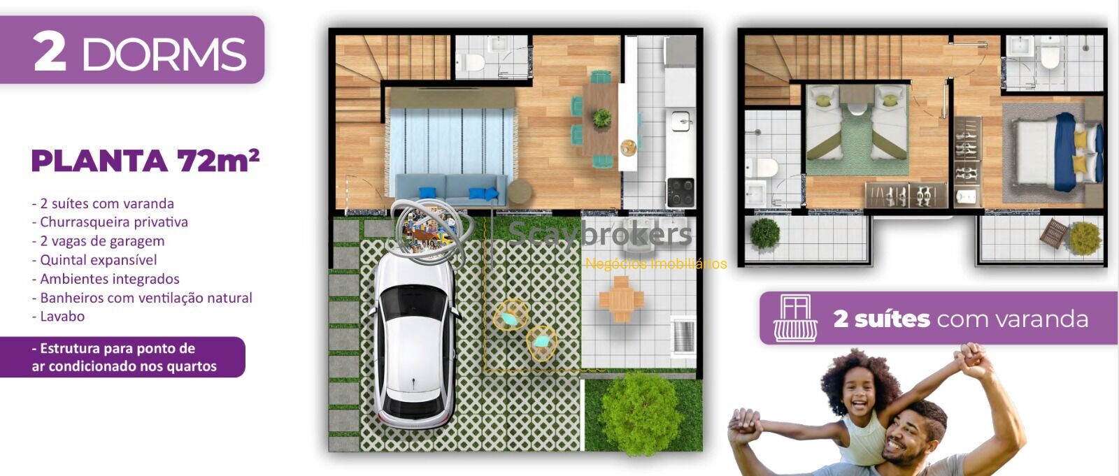 2 Dormitórios, sendo 2 suítesGaragens